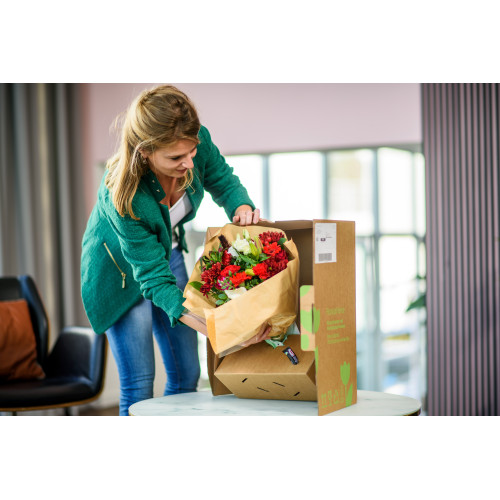 Dit boeket is geschikt in een sisal bloemenmanchet. Dit manchet bestaat uit een draadstructuur die taps toeloopt aan de onderkant. De kleur van de sisal houder geeft een extra dimensie aan het boeket. Dit boeket is uitgevoerd in het wit. Witte bloemen staan voor puurheid en eenvoud. Het boeket wordt voorzien van Chryal Arrive Alive, gepatenteerd schuim, dat de bloemen hydrateert tijdens het transport. Zo zorgen we ervoor dat je lang van een vers boeket kunt genieten!